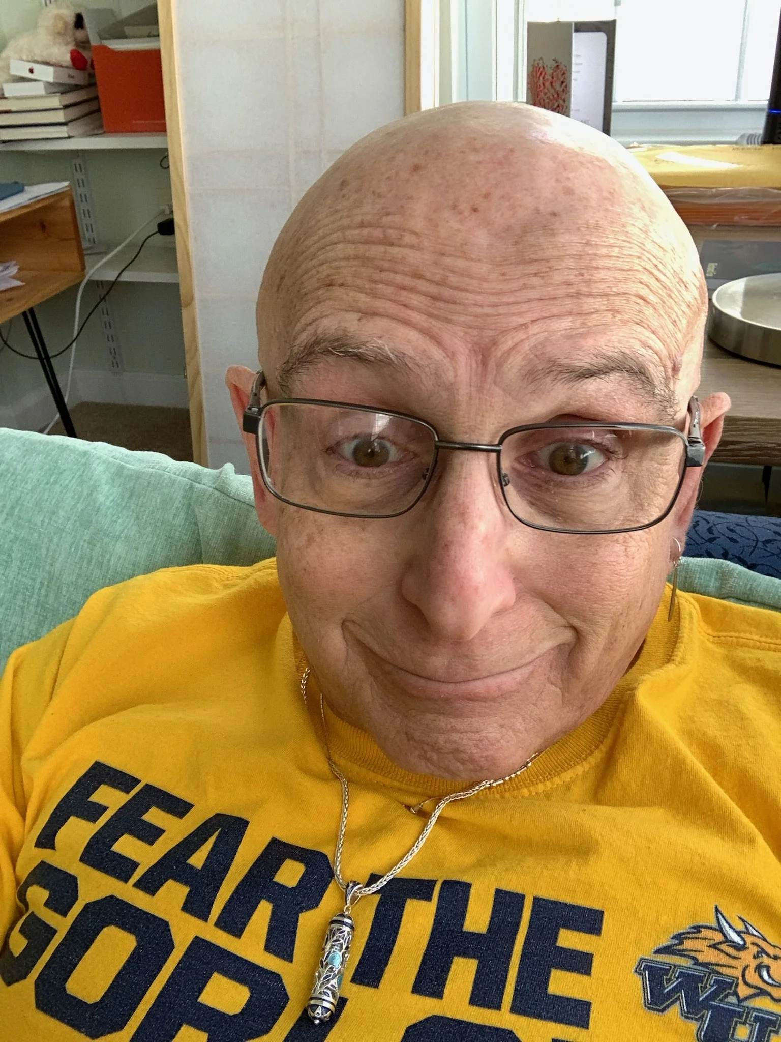 Hanging out in my college colors—FEAR THE GORLOK—you will be hugged.